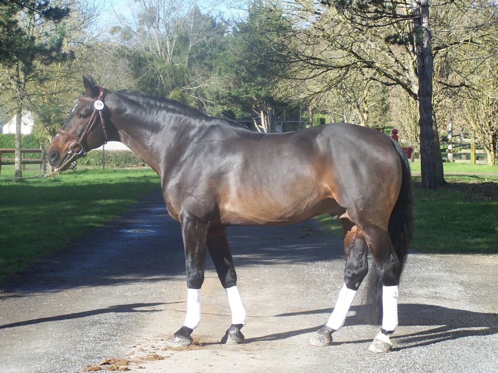 Ce fils de Burggraaf, d’un modèle et d’un caractère irréprochables, classé dans des épreuves internationales à 1,45 m apporte à ses produits un modèle très séduisant, de la locomotion rebondissante, un excellent tempérament avec du sang utile et d’indéniables qualités à l’obstacle : moyens, force, respect. Pour les éleveurs qui n’aiment l’alezan, Bandolero est homozygote bai !