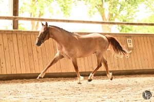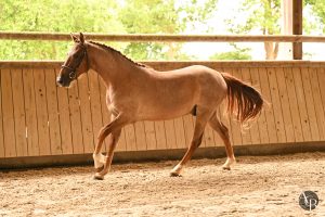 Hongre – Pfs – Aubère – né en 2023 toisant 1m46 par Vox Pop de l’Aulne, Co et Jiuggiola de l’Aumoy, Pfs par Ogrion des Champs, Sf